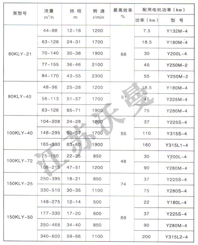 1.1无密封设计、KLY型液下离心式采用叶轮背叶片加副叶轮的动力密封形式,在泵正常工作时、无泄漏,这样既保证了泵的密封,提高泵的效率,又大大延长了泵的使用寿命。
