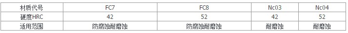 根据所输送介质的不同,FV型立式液下泵接触液体部分的材质可选用铸铁(用符号H表示)、铸钢、1Cr18Ni9Ti(用符号B表示)、1Cr18Ni12Mo2Ti(用符号M表示)、304、304L、316、316L、904、Lewmet合金、20号合金等材料制造。