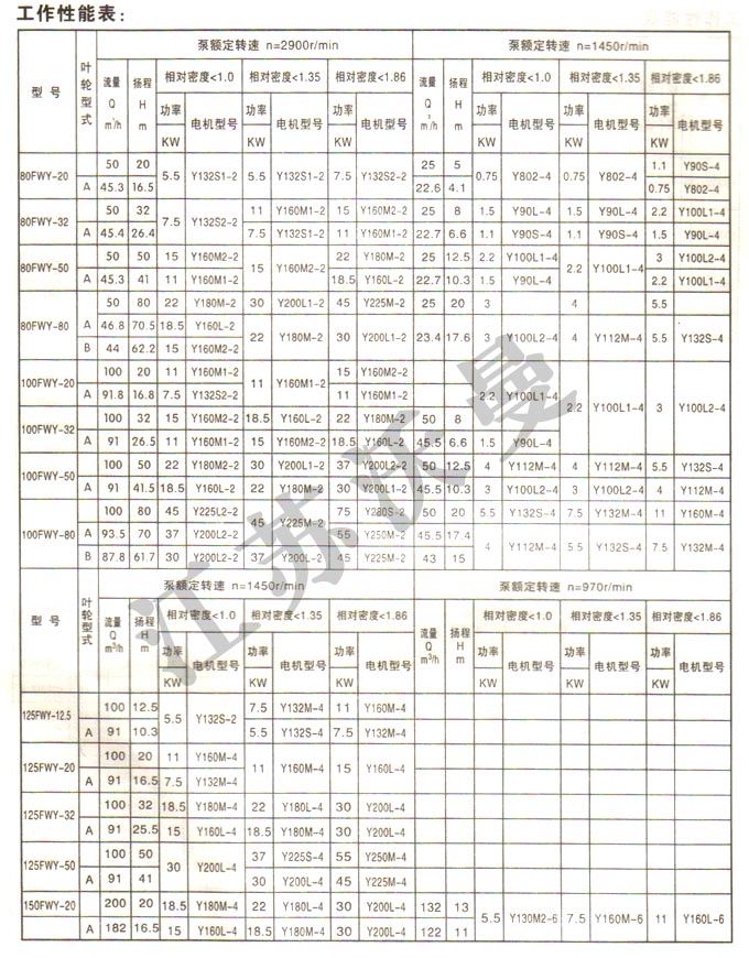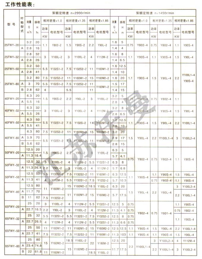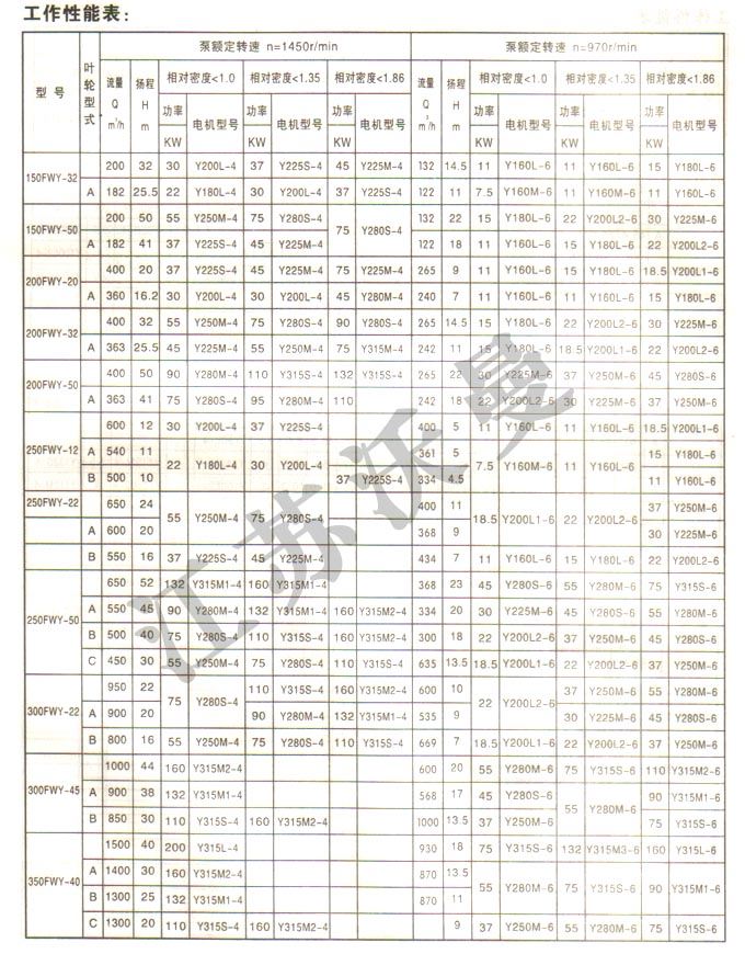 FWY型耐磨长轴液下泵是单级单吸离心泵,主要用于各行业输送含有固体颗粒(包括结晶介质)的渣浆,污泥、粉煤灰和各种废水。