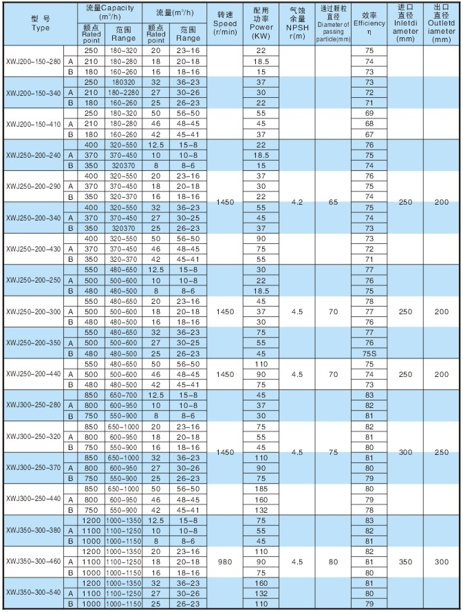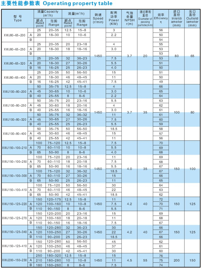 XWJ系列新型浆泵采用叶轮开式结构,通过能力强,与衬板之间隙可调,使泵长期高效运行。总体结构参照ISO2858标准形式,即后开门结构,泵转子部分和轴可从泵后部拆卸,检修时不需拆进口管路。采用副叶轮动力密封加机械密封或骨架、填料密封、确保浆泵在运行中无汇漏。