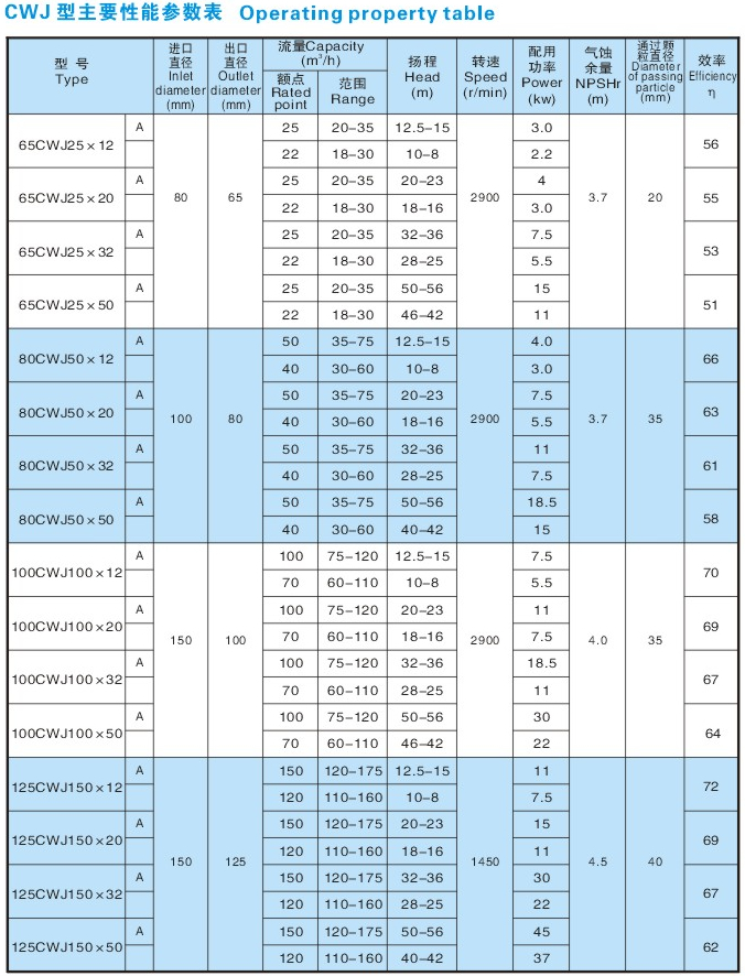 (Z)CWJ型粗浆泵采用“S”型大通道国外先进的双流道叶轮形式,专门针对造纸行业粗浆及含有杂质工况而设计的一种新型粗浆泵。该泵颗粒通过性很好,具有无堵塞,输浆浓度(1~8%)范围广(特别适合输送5%~6%)等特点,可通过长纤维棉浆(纤维长度60-80mm)、化学纤维浆、粗木浆、各种颗粒、污水垃圾等。与老式ZBJ型浆泵相比叶轮自身轻(采用板焊叶轮、精铸叶轮),轴径向力小,使用寿命长,效率可提高10~15%。若过流部分采用ZG1Cr18Ni9Ti、1Cr18Ni12Mo2Ti、CD4MCu、JM3材质,可适用于输送200℃以下含有腐蚀性液体的浆料。采用螺旋式特殊叶轮可输送≤18%中高浓浆料。